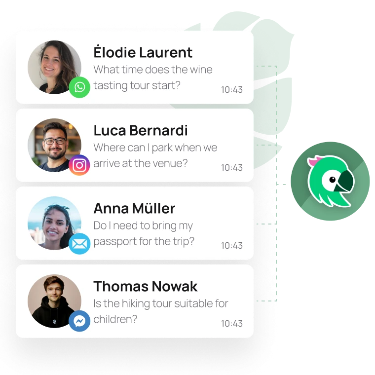 Email, WhatsApp, Booking.com, Insta DMs—everything flows into a single queue.