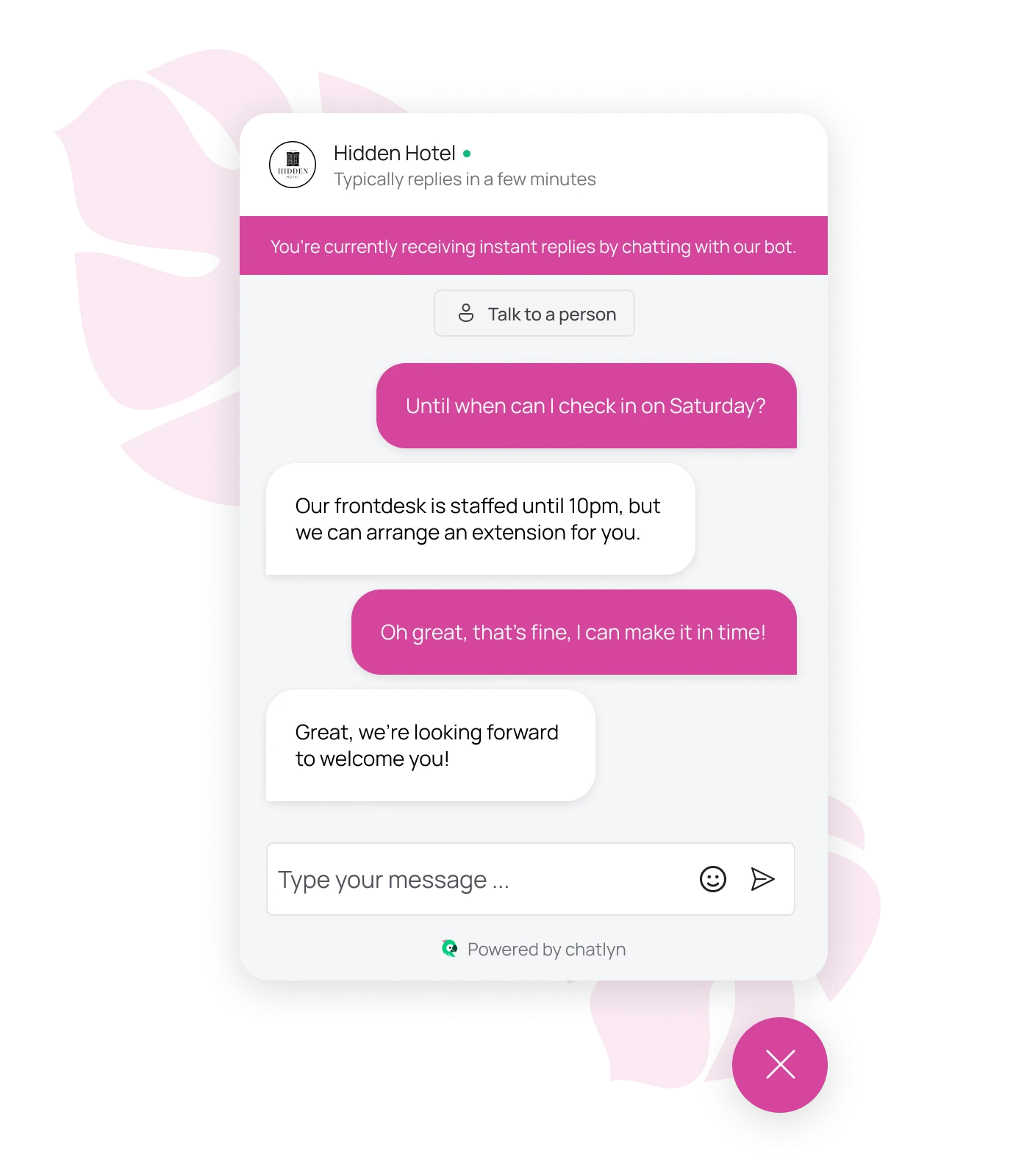 Il chatbot AI di chatlyn trasforma qualsiasi messaggio, su qualsiasi canale, in più prenotazioni, ospiti più felici e tempo risparmiato per il tuo team.